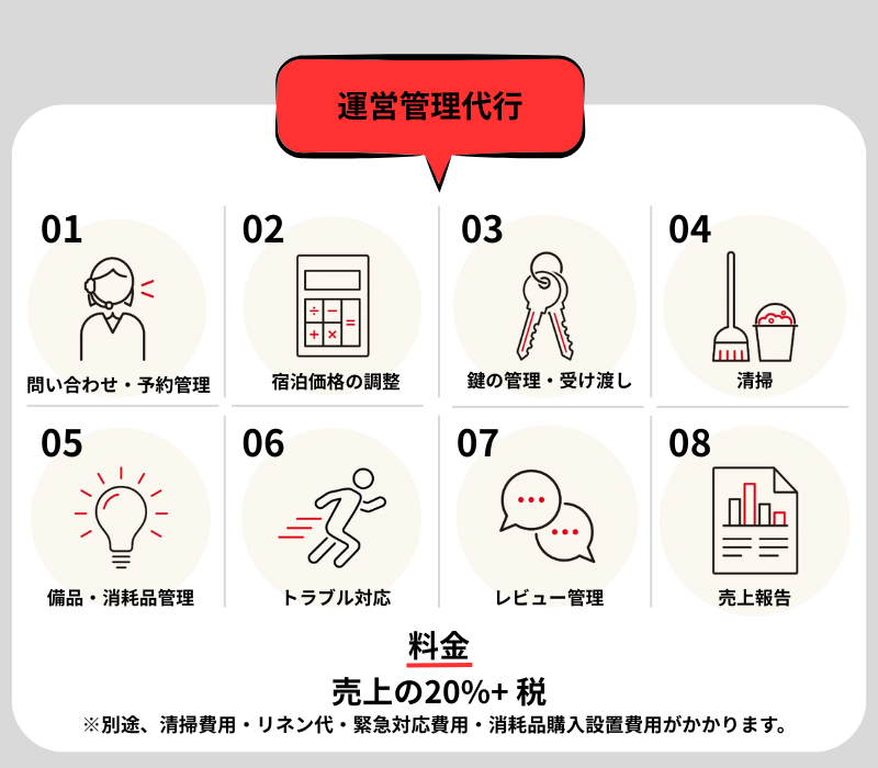- 宿泊売り上げがない場合、運営代行費用は発生いたしません。